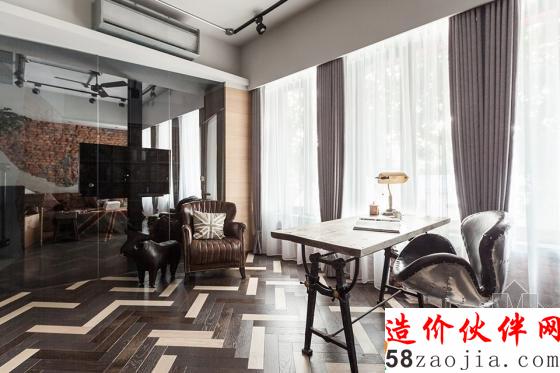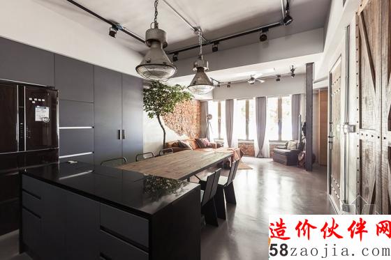 设计师降低窗台高度、加大窗户面积让窗外的美景、光线与室内产生对话;并运用可回收再利用的铁件与历史刻画过的旧有家具,如:订製铁件书柜、跳色人字拼地板、旧工厂回收的吊灯、餐椅等。