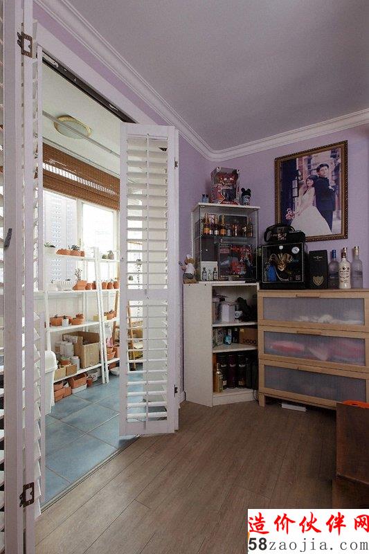 小资生活!58㎡简约一居室大变身,阳台上铺设防腐木能够轻松营造出温馨的居家氛围,比起铺设地砖是完全不同的审美感受。