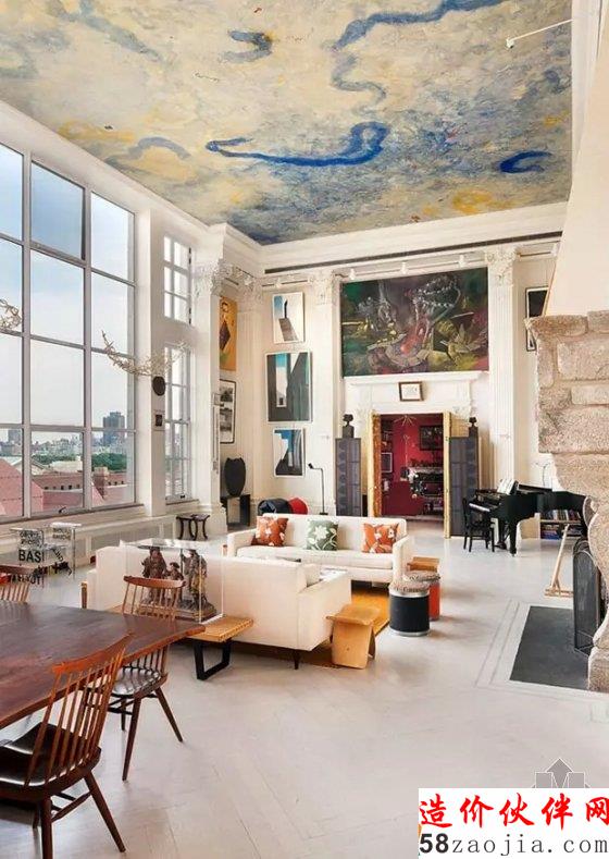 很多人都不太敢尝试整面天花都是绘画的样子,可国外很多设计师都这样做了,营造出的艺术性是令人敬畏的。