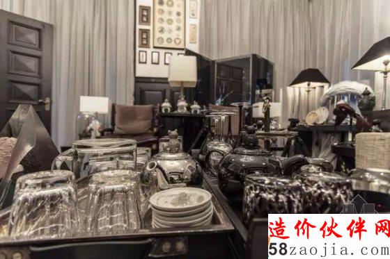 以往媒体笔下夸张的华丽其实都毫不夸张,这是一所由名牌堆砌起来的房子,包装在古典欧式风格的装修之下,FENDI的地毯、KENZO的茶几,GUCCI的靠垫,Meissen的瓷器、HERMES的装饰物……随便一处小小的配饰都价值不菲,大量有来头的巨型、中型、小型油画、版画窒息般地充斥着每一处墙壁的留白,三层木楼梯扶手两边的每一个窗台上都摆放着设计师雕塑作品。据悉,郭敬明家中的一把雨伞价值就约5000人民币,水晶吊灯及落地灯价值40万,笔筒1500元,书桌地毯100万。