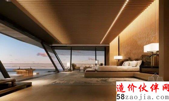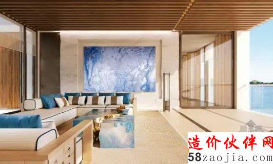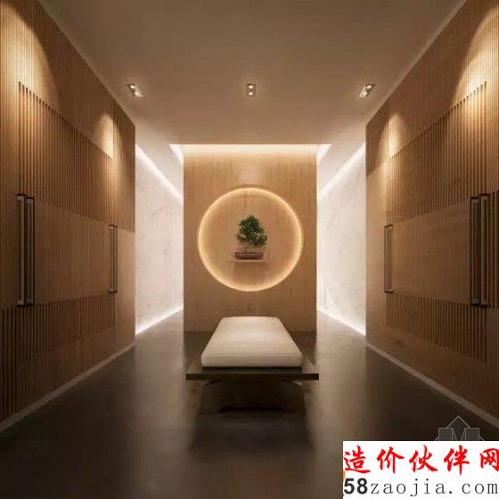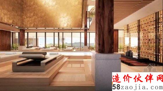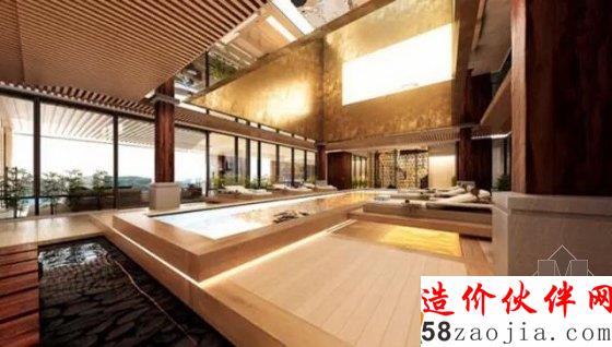 选择了新东方的设计风格,中庭处有水景与休闲的躺椅结合在一起。成为视觉上的饕餮盛宴。