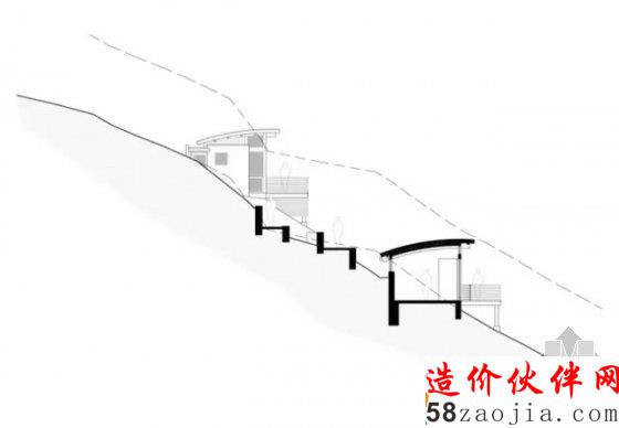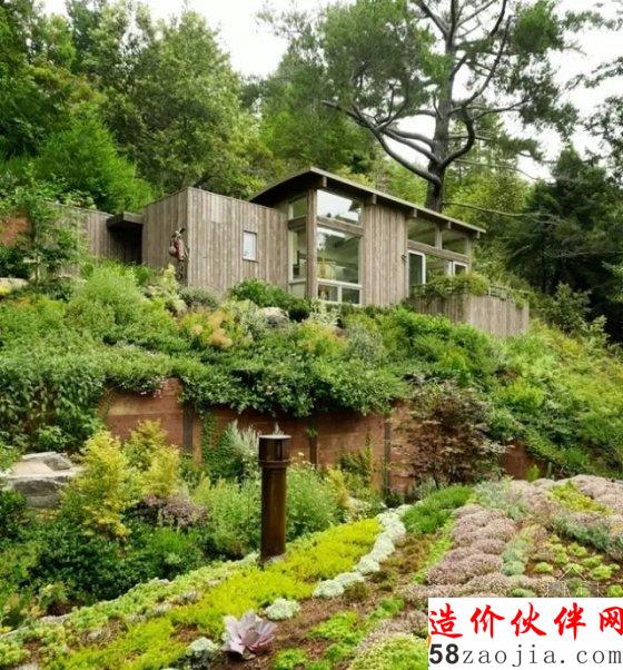 建筑物整体融入于山坡中、隐没在树林间,而屋顶上开辟出来的一片小花园亦让小屋更贴近于自然,更添一分清雅悠静之风。
