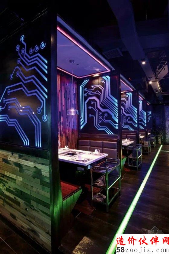 与其他火锅店不同的是,采用了麻将这一趣味元素,将麻将的“条子”揉入电路板中,用电光火石之蓝诠释了时尚的麻将。