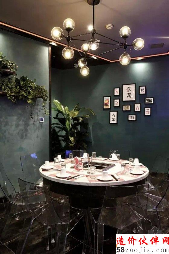 将新的灯光气质与年代感结合起来,点缀以手绘涂鸦,麻将食谱装饰画,绿色植物群,这确实成为一个有想象力冲击的空间,在这里用餐是一种舒服的体验。