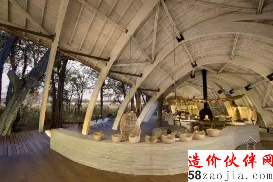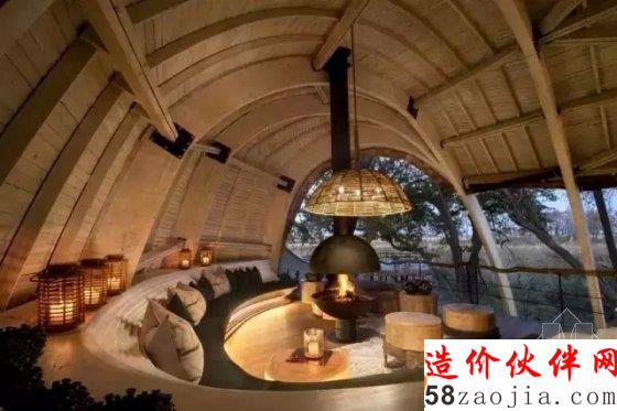 开放式的空间犹如野兽敞开的胸腔,这样不仅有助于空气流通,还为住客们提供了在室内观赏野外动物出没的绝境视野。