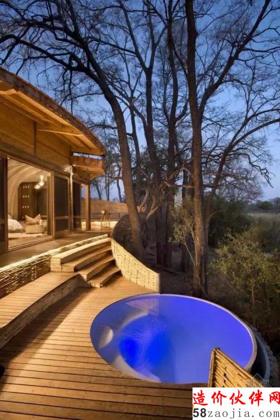 这家酒店共有12间独立套房,均配备有私人泳池与齐全的服务设备。与周边环境相协调的自然原色、简练的木质线条,勾勒出如同鸟巢般的客房空间。