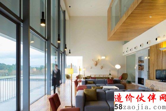 Minho酒店位于葡萄牙维亚纳堡区的维拉诺瓦德克维拉镇。这是一座建于2006年的建筑,2014年经过翻新和扩建拥有了全新的区域和温泉室,为酒店原来平淡无奇的设计融入了更多的生气。负责改造设计的Virgulai事务所选用产自伊比利亚半岛东北部的板栗木作为建筑的主要材料,创造出一个自然开放的度假空间。建筑由排列不同的盒子结构组成,为不同空间和楼层创造出强烈的连续性。地面和部分墙壁采用白色卡拉拉大理岩,柜台、吊灯等细部也采用白色涂料,与木材的温暖色调形成反差与调和,强调出整体舒适放松的氛围。