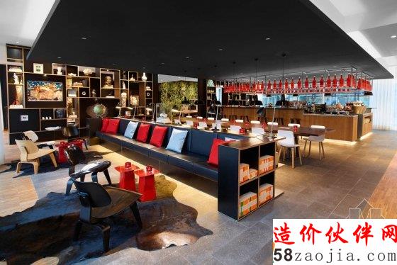 citizenM在阿姆斯特丹、格拉斯哥、伦敦、纽约以及巴黎都有分店,但鹿特丹这家citizenM却是骨子里透着时髦。他们可以直言不讳地宣称,将过时的玩意儿都丢掉了。酒店请来了全球知名的酒店设计事务所Concrete,内部装饰采用了大量红与黑等浓墨重彩的色调,辅以造型前卫的旋转木楼梯,现代主义风格的家具又提供了恰适的奢华感。创造艺术层面的视觉刺激成为鹿特丹citizenM酒店的出发点。