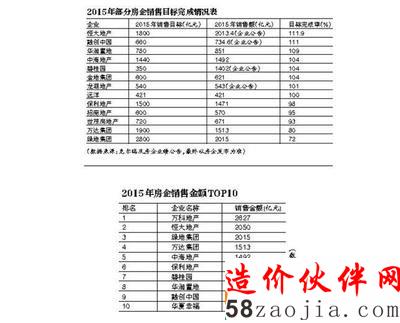 在上述多家企业超额达标的同时,也有一些房企没有完成全年目标。根据克尔瑞数据,保利地产2015年销售1471亿元,与其1500亿元的年度目标相比,仅实现98%;而万达和绿地的年度销售分别为1513亿元、2015亿元,达标率分别为80%和72%。