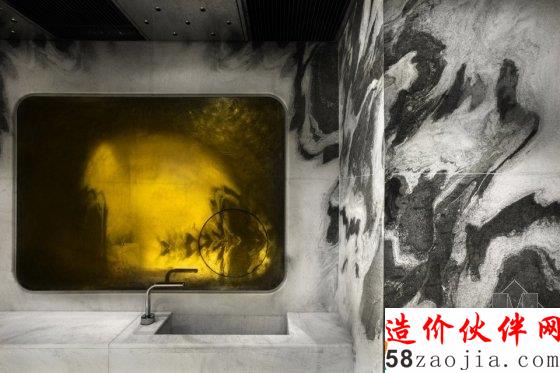 光,是一种人类共通的设计语言,能牵动人心,引发共鸣,超越语言,无分国界。不论是自然光或是人工照明,都有助展现材质的特征、揭示纹理,或透亮反映,或掩蔽投影。在接待大堂里,白色大理石蜿蜒的天然纹路,与隔断墙身投射出的光影相间,交织出跃动淋漓的构图。而在入口走道的玻璃纤维强化水泥(GRC)预制墙体,其错综的接合与细密的轮廓只有在地面泛出的光线映照下才昭然可见。