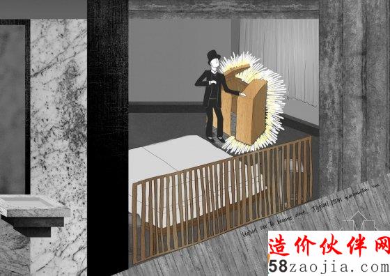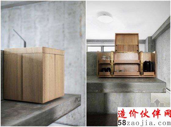 整个设计不论在实体或心理层面上都可以说是静待旅客逐步揭开的旅程。进入一个空间犹如打开一扇门。这个开启、发现的仪式,是惊喜的一瞬、情感的萌发。我们为这个酒店探索之旅创造了一连串引人入胜的场景:从旅客到达酒店,穿过大门进入深邃的走廊,搭乘升降机来到接待大堂,然后是透澈明亮的客房楼层。一幕幕的惊喜引领旅客到达这个旅程的目的地──房间。进门但见一个盒子伫立在中心,掀开后却是收藏着精美小馔和用品的柜子和书桌。旅客把每个空间与细节层层揭开,逐步领略酒店的缜密心思与含蓄美学,令这个旅居经验充满意想不到的发现。
