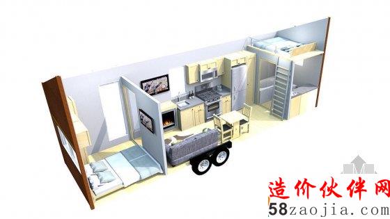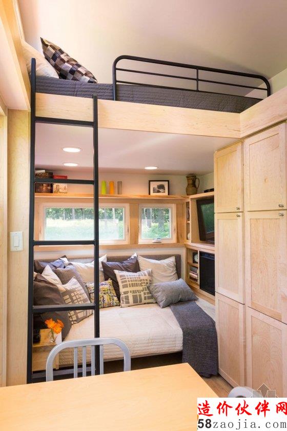 屋子的两头含有loft夹层,分别放上一张大床,因而一共有3张床,可以容纳6个人,房间和家具一共售价65400美元。