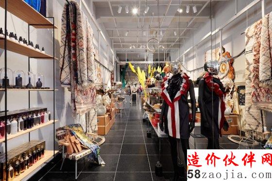 在零售区域,这家买手店并没有做多余的装修,因为其丰富的品类本身已经足够形成一道道吸睛的风景线。而为了凸显这家买手店的“权威性”及品位,店主还在门店的各个角落摆上了许多艺术家的装置作品及古董装饰,如此一来,即使不购物,光在店内参观也非常有意思。整家店使用面积虽然只有700平方米,但看上去逛上半天,甚至一天都不是问题。