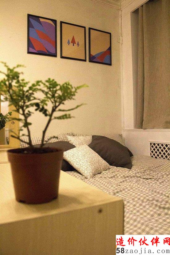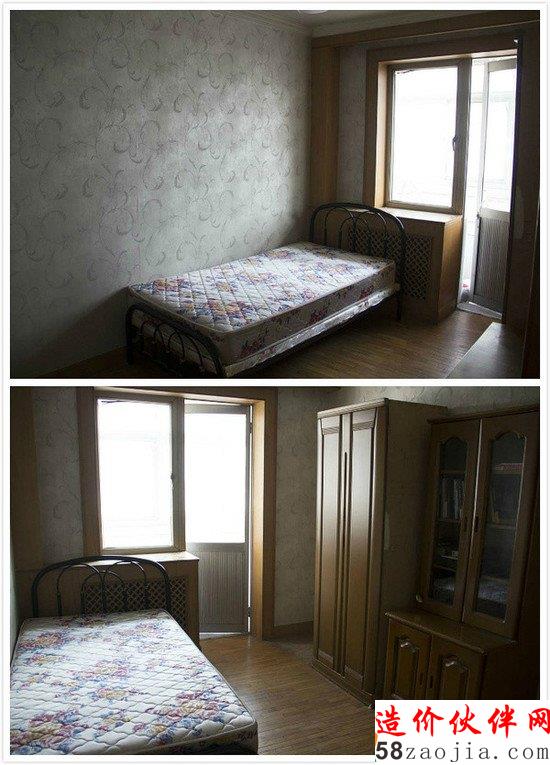 那么,要配合这样的设计方案,墙面的壁纸得改,丑陋的床、衣橱和置物柜都得扔,暖气罩得重新刷漆,顶灯得换,地板也得改,还得购买一大堆新的大中小件...