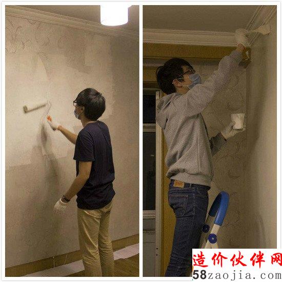 2.墙面处理由于壁纸拆除需要额外的人工投入,因此工科生们决定简单处理,不拆了,直接在壁纸表面覆盖两层乳胶漆...事实证明此方式可行,两层漆基本是可以盖住里面的纹路的。