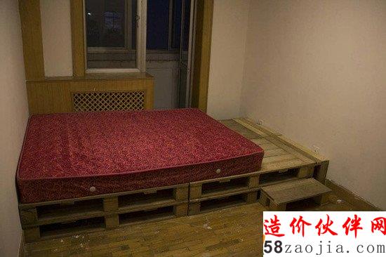 由于床台之下不影响视觉效果,因此在搭建床台之后再粘贴地板革可以减小粘贴面积,从而压低成本。就是这么节省!
