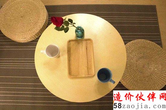 3)小圆几+圆藤垫两只+地毯