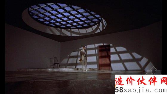 KenAdam在电影场景设计方面的有着奇思妙想,《奇爱博士》的作战指挥室就是他用一张大圆桌、一圈顶灯和几张地图阴影打造的。这也体现了他在设计上的趣味——极简布局的冷色调科幻风。