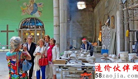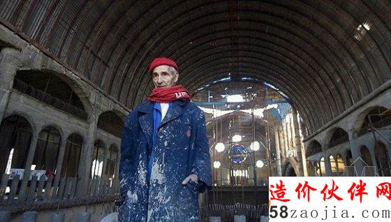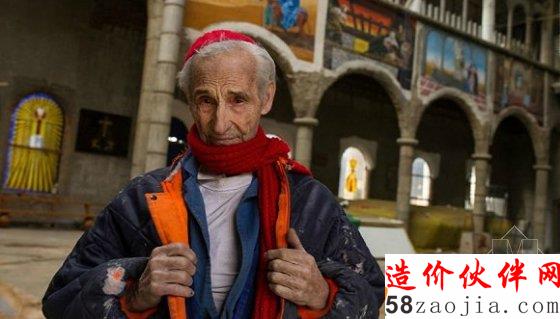 几十年来他一直住在这个教堂的建筑工地中,每天早晨3点半就起开始干活儿,一干一整天。