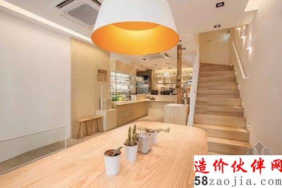 强调纯净的自然原味。不同区域的灯都不一样。木质的器具显得古拙而贴近自然,点餐区也处理得简洁有序。