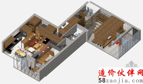 两间小孩卧室分布在对立的一头,它们都有相似的结构,带有床的平台,带有沙发的休息区和一个光线最好且只有桌椅的学习空间。卧室之间一半的墙面是玻璃以扩大自然光线的进入。而游戏区因为过暗,也将卧室的墙面设计成玻璃窗来增加自然光的进入。这里的风格与起居室等部分依然统一,但同时因为距离而又保持一定的独立性。
