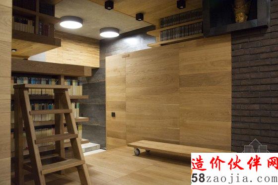 书架后面一侧挨着走廊,他们不忘也做成柜子。