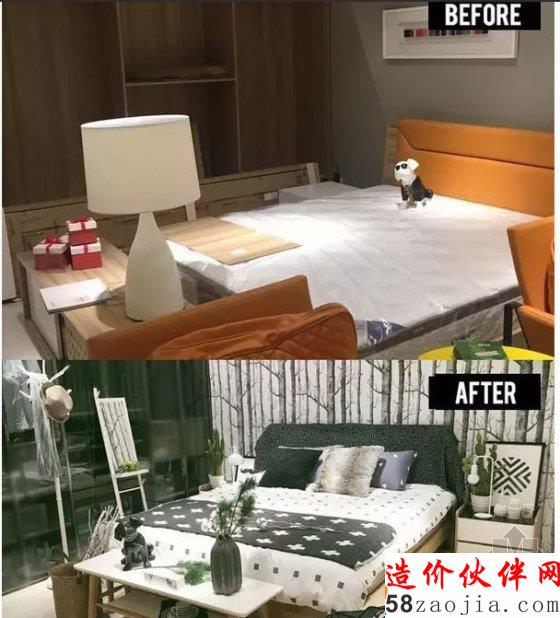 在改造过程中,并没有换掉床、地板、等硬装,只是通过颜色搭配和增加软装元素!