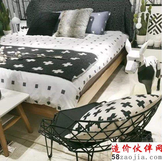 4.在布艺的选择上,以黑、白、藏蓝色为主,配色、花纹都使用经典色彩和元素,展现用户精致的生活态度。