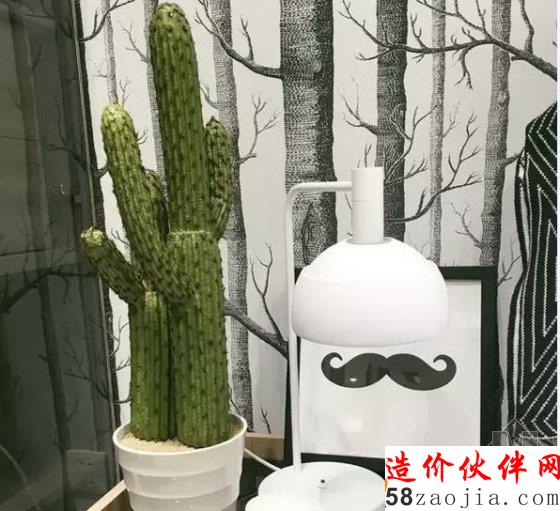 3.增加绿植、黑白摆件、白色台灯等,增加生活气息,更能凸显高富帅气质。