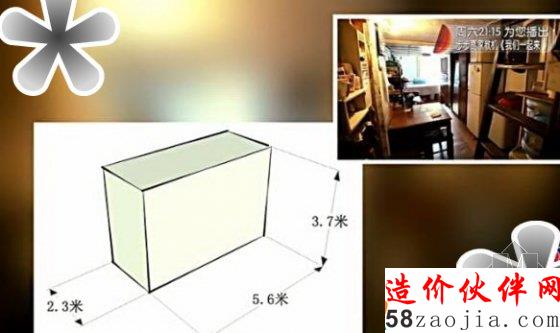 这套居民房高有3.7米,宽只有2.3米,长度有5.6米,是一个长方形的户型。