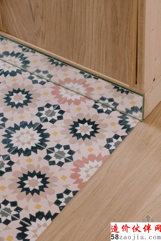 室内的其他墙面或地板则使用浅色的木材,比如后的墙面,它们对环境的干扰最低。而贴在柱子和地板上的植物图案拥有墙纸的作用,也让房间拥有现代感。整套改建花费仅 5000 欧元,却丝毫不让人觉得廉价。