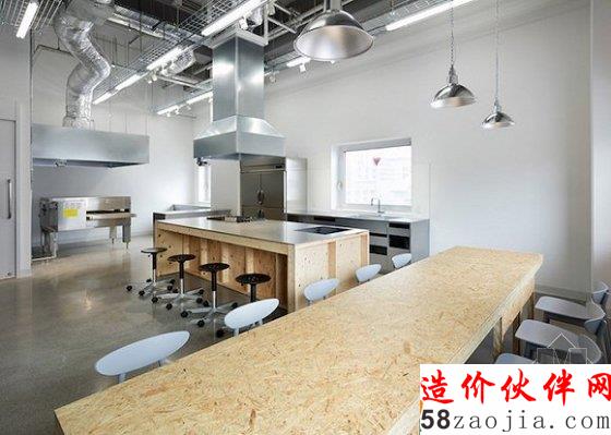 设计师还在摄影棚和图书馆的空间里放入了很多的桌子,有三角的、长方形的,还有圆的,为影棚的使用者提供更多的社交空间。桌子多种大小的安排也满足了不同人数的聚会要求。