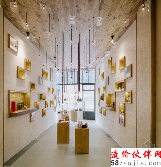 客户对设计师的要求是创造一个全新的一切与藏红花有关的概念店。藏红花是一种极小极轻、极其珍贵又非常传统的食材和药材。考虑到这些特点,设计师结合店面的实际情况将它们反应到室内设计中来。