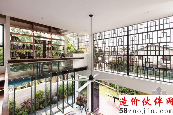 内部是一个有着双层挑高和巨大风扇的开放式客厅,这样的设计让空气更好循环,在炎热气候里是很必须的。