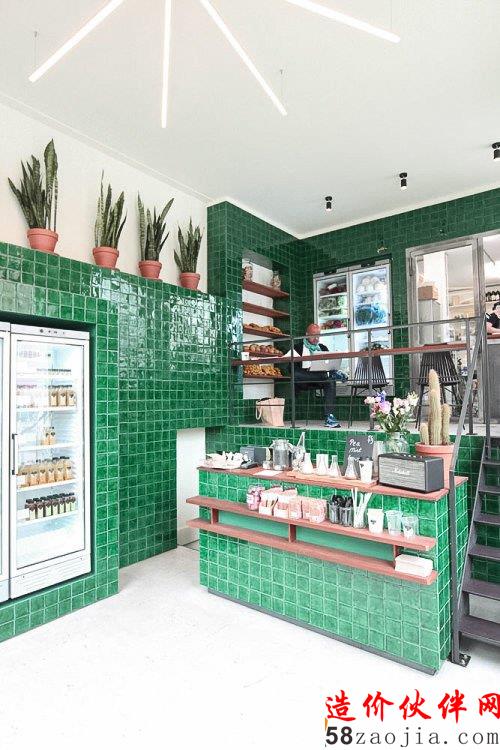 这不是 Standard Studio 第一次设计冷榨果汁店,2014 年,他们还曾在阿姆斯特丹设计过一间冷榨果汁店,绿色瓷砖成为内饰角色。