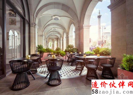 这幢摄政时期的建筑拥有波特兰石构筑的外观,传统的柱廊露台和双层拱形窗户。Tom Dixon 借势把这里改造成了半户外式的用餐空间。