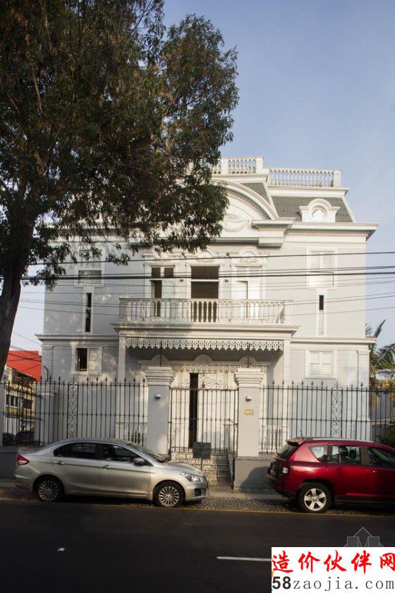 这是一家美国广告公司恒美广告(DDB Worldwide)在秘鲁的办事处,在改造前,它曾经历了很多改变。最近一次建筑师 Juvenal Baracco 将两层楼的土房改建成有 8 个房间的复式公寓,保留了带有装饰风格的柱子或花纹,结构对称,非常典雅。内部的中庭也是楼梯,8 个房间整齐排列在四周。