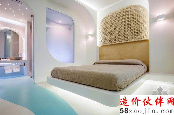 床下面安装了灯光,酒店内的床好像是漂浮在那里一样。