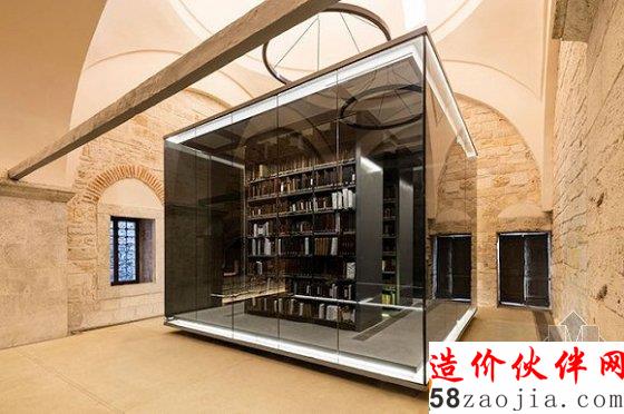 你也许会质疑这样一个玻璃盒子和古建筑的协调性。实际上,整个图书馆在几次翻修后,已经颇具现代感。而藏书阁作为独立存在的空间,也并不会对图书馆主题建筑风格产生过大的影响。