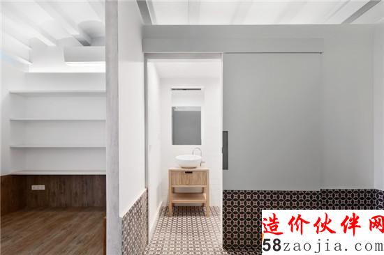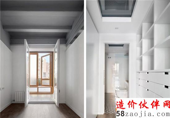 。建筑师在公寓内部不同空间间以及外部入口的划分出都使用了白色细微水泥这种新型材料,经过重新规划的室外空间明确了庭院与城市街道的界限,让空间更加完整与实用。