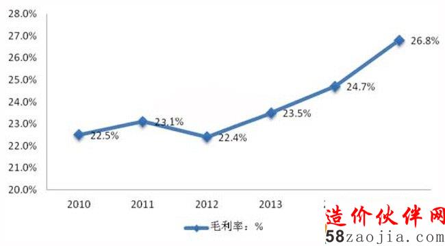 2014年,我国装配式建筑行业毛利率达26.8%,2015年,我国装配式建筑行业毛利率达24.7%,在2014年的基础上增长2.1个百分点。