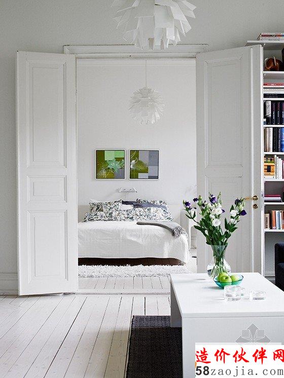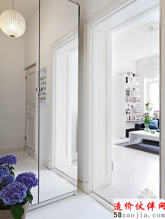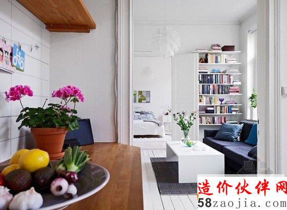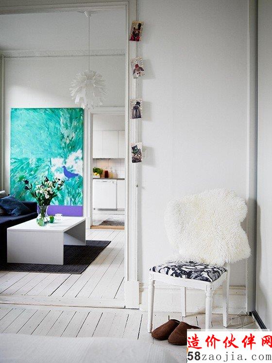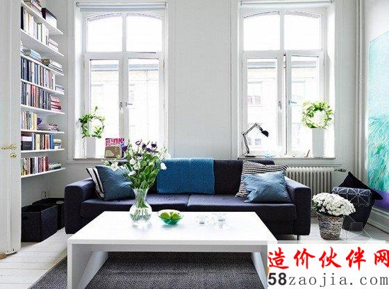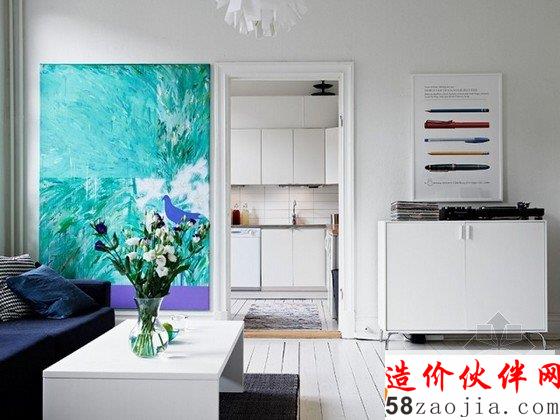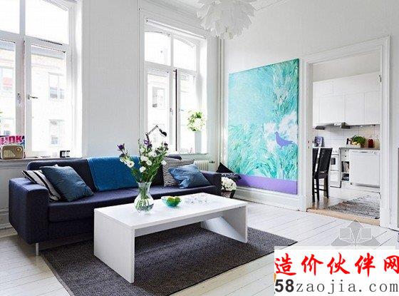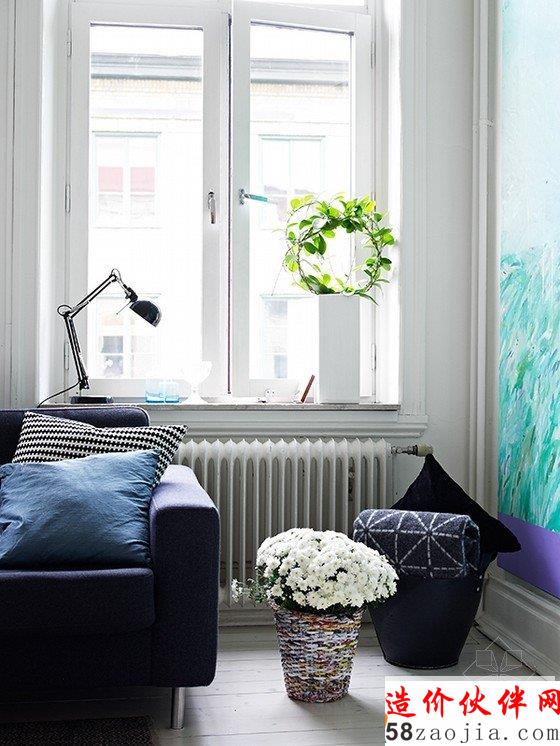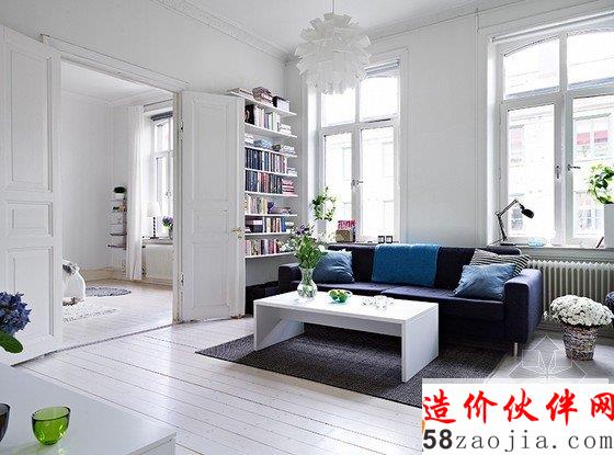 蓝白清新公寓室内装修设计,白色是白搭的颜色,很多情况我们会忽视的一种背景色。而在各种搭配之中,蓝色与白色的搭配却最显得有 一种莫名的小清新的味道,或许不需要大面积的蓝,只需和这套58平米的公寓一样,空间搭配少些蓝色软装即可。