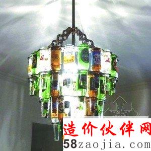 简易吊灯:提升房屋的品质,灯饰是必不可少的。啤酒瓶是我们日常生活中常见的物品,准备好几个空啤酒瓶,用钥匙环穿进每个啤酒瓶的瓶口,再将几个啤酒瓶固定好悬挂在吊灯旁边,这样简易的酒瓶吊灯就做好了。