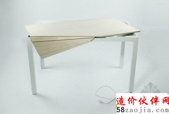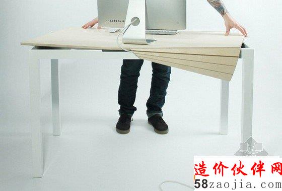 当不用电脑时,我们可以把很多杂乱的小东西都藏在桌面下边的空间内,展现在眼前的便是一个整洁干净的桌面,然后当我们需要它们时这些东西又会马上出现在案头之上。如果细心观察大家就会发现桌腿的走线槽和桌面的独特结构设计应该是设计师Michael Bambino最费心思的地方,但是与此相比这个《节省空间的多功能笔记本电脑桌》更加将空间节省到了一个极致。