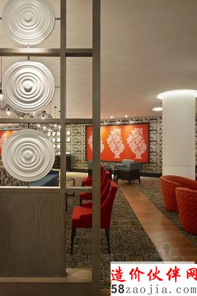 这座Mings Dim Sum 餐厅是由澳大利亚Red Design Group精心打造的。设计师大胆地运用了色彩,地毯和壁画非常别致,室内的柔和的照明配上色彩的布局,有了些中式的味道,妙趣横生。