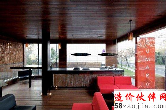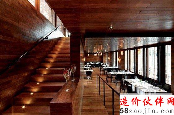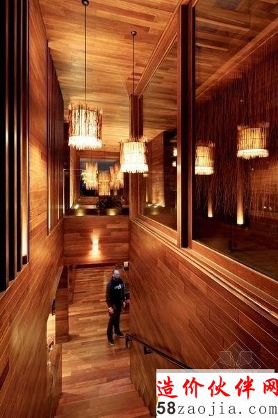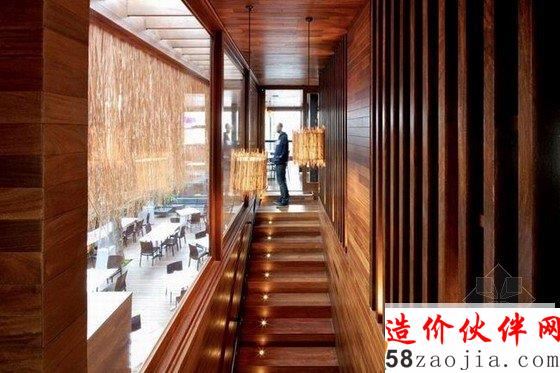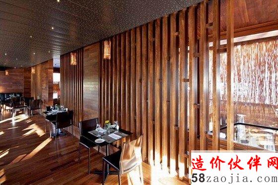 情调餐厅室内装修设计独特的檀木材料造就了这家餐厅,舒适宽敞的用餐空间,室内照明的温暖柔和,整体非常有情调。