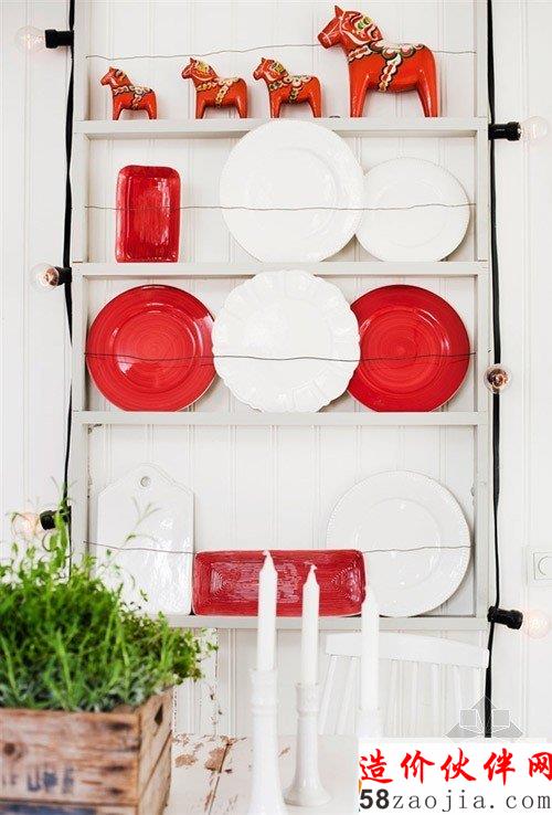 乡间小屋精致室内设计房间里到处都是主人喜爱的红色小木马,除此之外,阳台与盘子架上也摆满了热情有趣的红色铁皮盒子与餐具,这一切都与新鲜花材组合在一起,点亮了整个空间!除了在这里享用新鲜的时蔬与松软的烘焙,更可以品尝幸福感吧!
