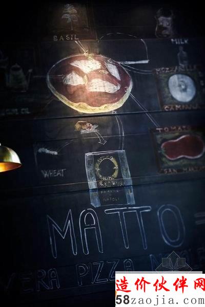 意大利餐饮店室内设计把充满艺术感的工业原材、自制家具、几何及有机图形巧妙配搭,充满玩味的设计黑色背景墙上的手绘图案及 MATTO 卡通人物,令整个餐厅的氛围更添趣味,同时亦添上一份温馨感。Darryl 说:“设计沿用了多种自然原材,充分表现餐厅独特的个性之余,亦有不少有趣的细节,留待客人细细发掘。”