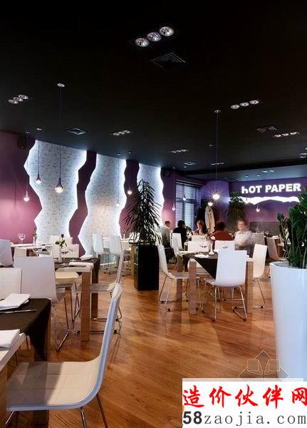 这家位于波兰的 Hot Paper Restaurant 设计独特,餐厅室内设计墙面装饰绅士别致,创意非凡,舒适的室内空间配上室内照明,营造了一种温馨的氛围。