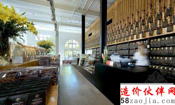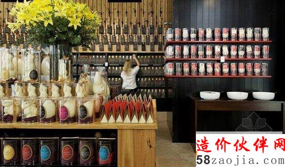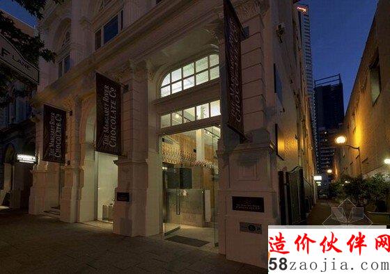 玛格丽特河巧克力店位于澳大利亚的珀斯,澳大利亚巧克力专卖店室内设计这是由前爱德华七世的银行改建而成的,灰色水泥幕墙被改建成巧克力店面,在宽敞的室内空间内展示出五颜六色包装的巧克力和美味的食品